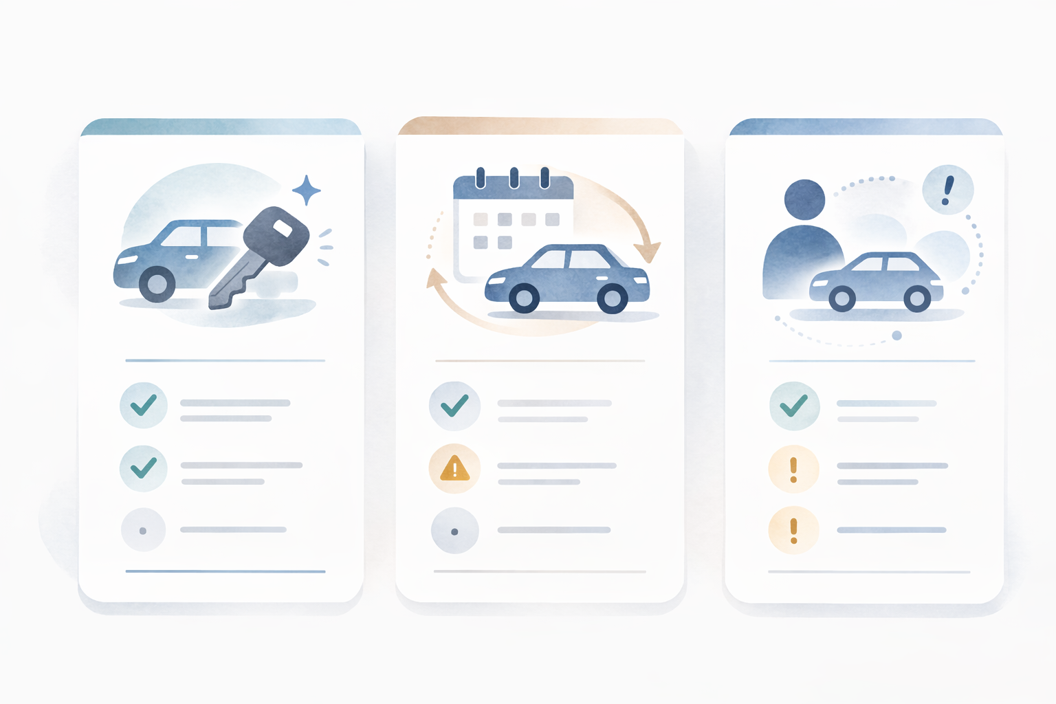 - 向く:車の利用が少なめ/名義変更や契約が面倒/まずは最小で始めたい