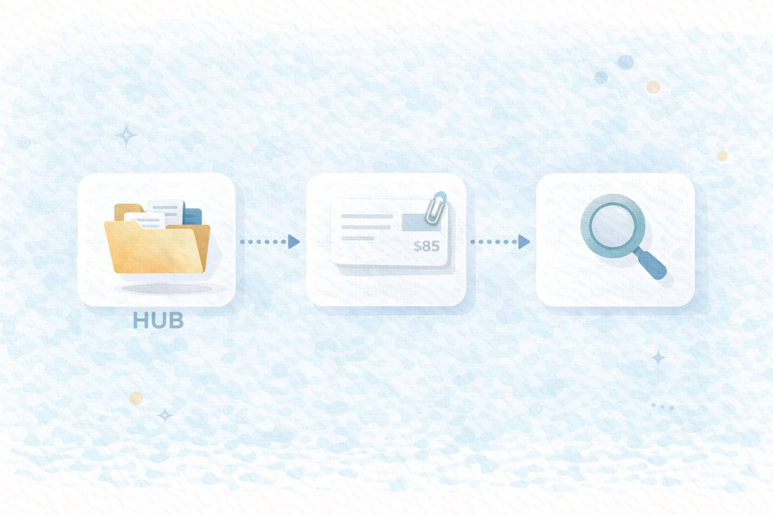 証憑が散ると、仕訳は永久に終わりません。ここでやることはシンプルで、ハブに集めるだけです。完璧な分類より、集約が先。